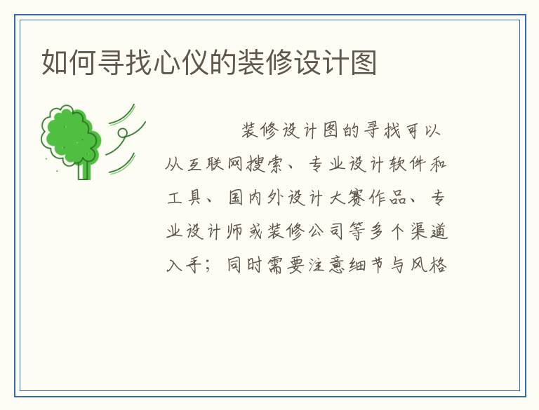 在寻找装修设计图时,要注意细节和风格的选择。根据自己的喜好和生活习惯,选择适合自己的装修风格和细节处理。